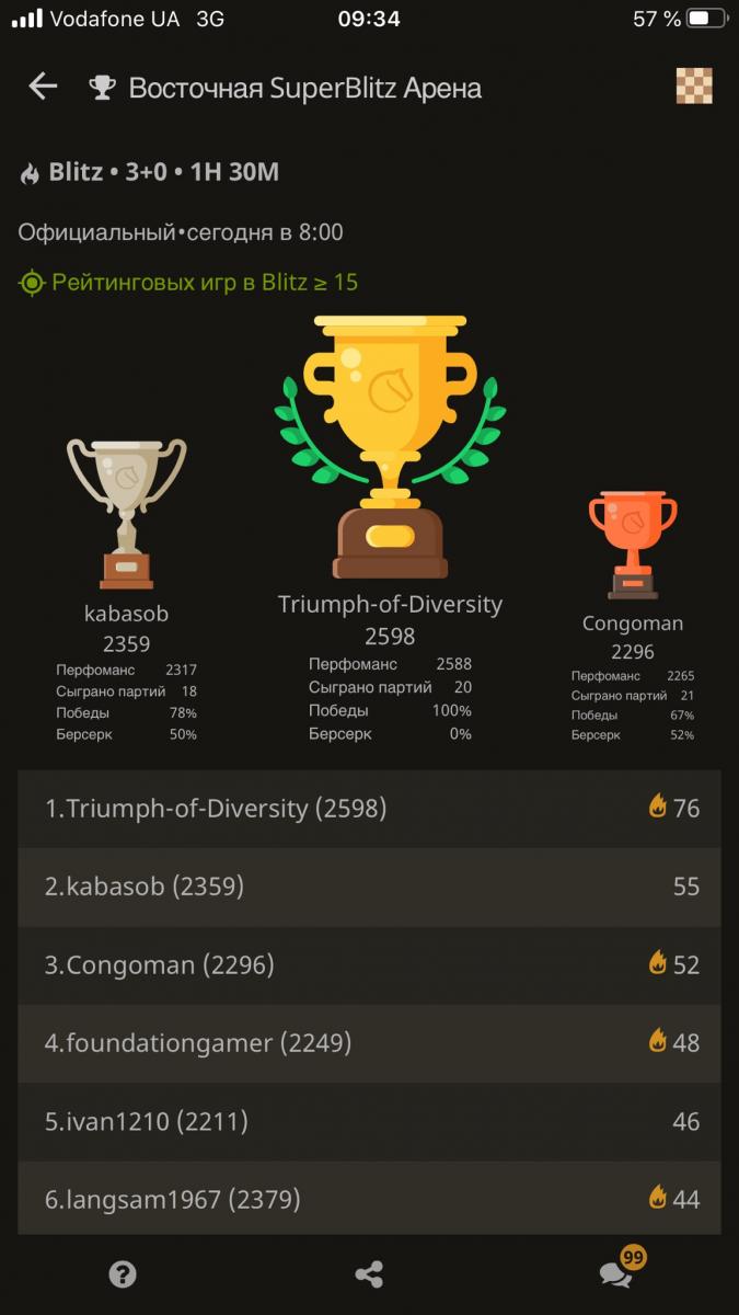 76 очков и 1-е место!