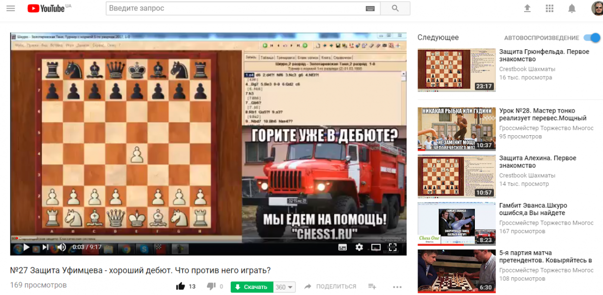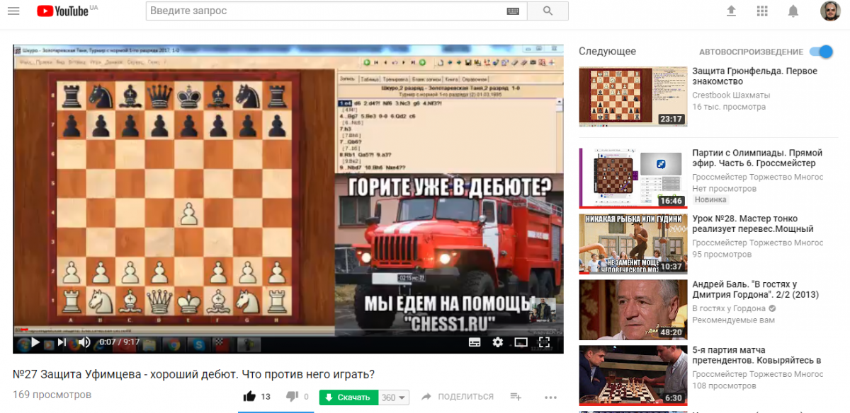 Видео№27 "Защита Уфимцева - хороший дебют. Что против него играть?"