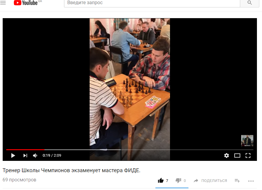 Посмотреть видео "Тренер Школы Чемпионов экзаменует мастера ФИДЕ" можно посмотреть по ссылке - https://youtu.be/7JwNGHaiTws